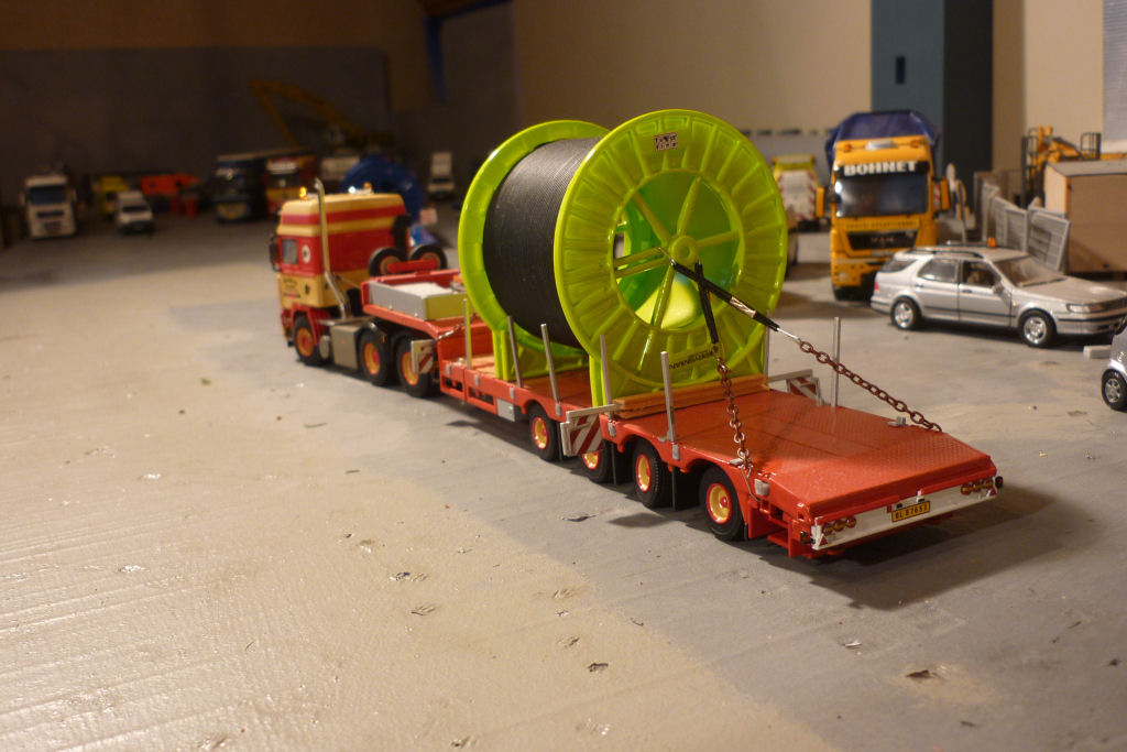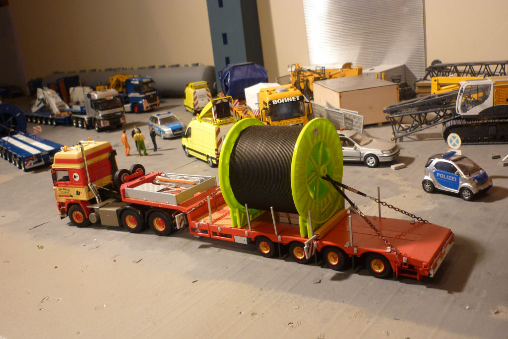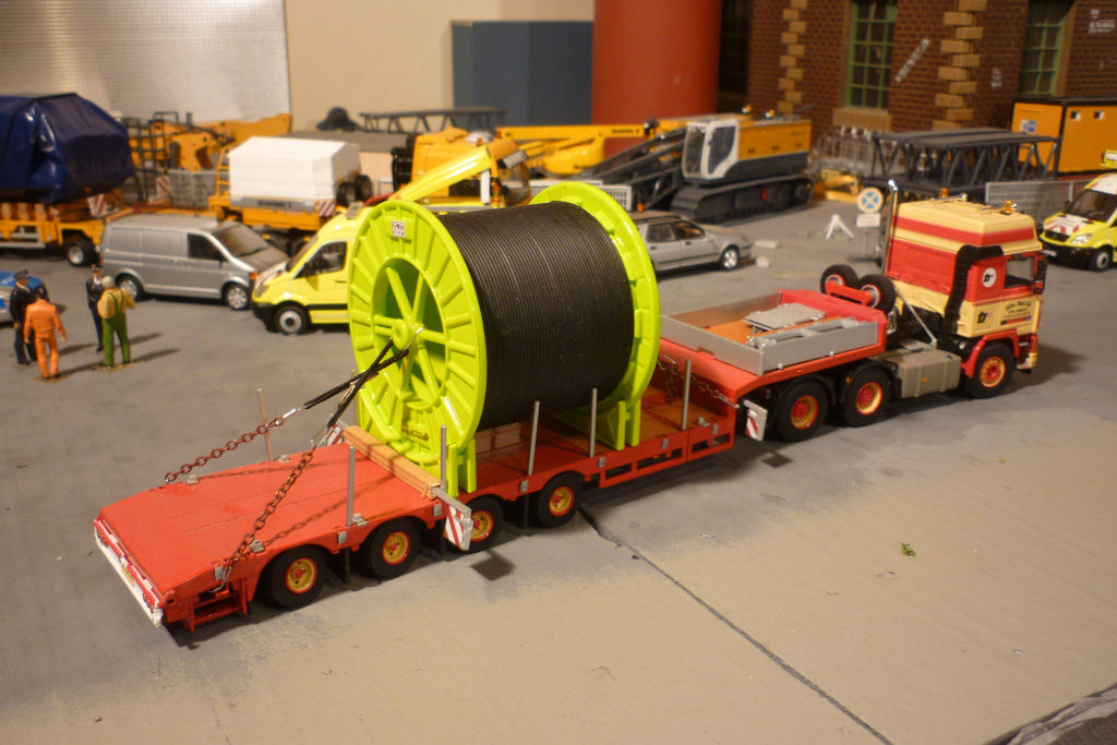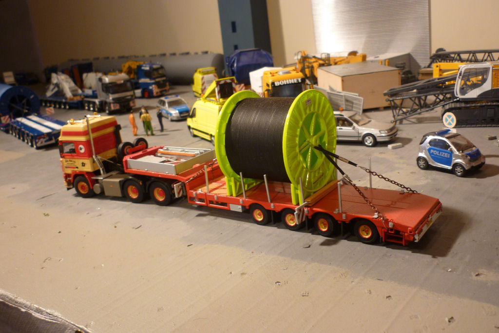 Dreiachs Zugmaschine mit Kabeltrommeltransport