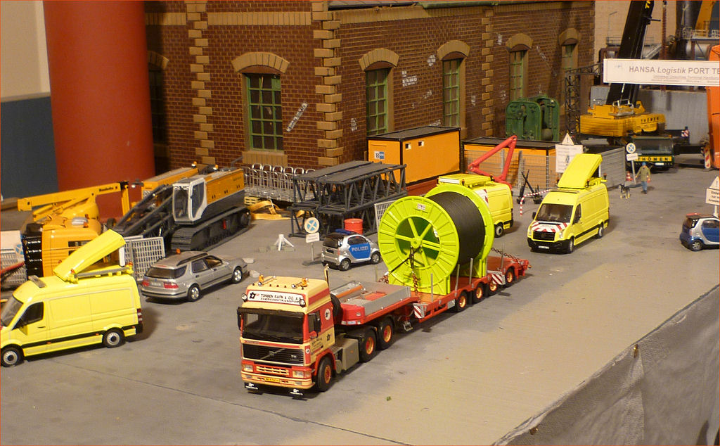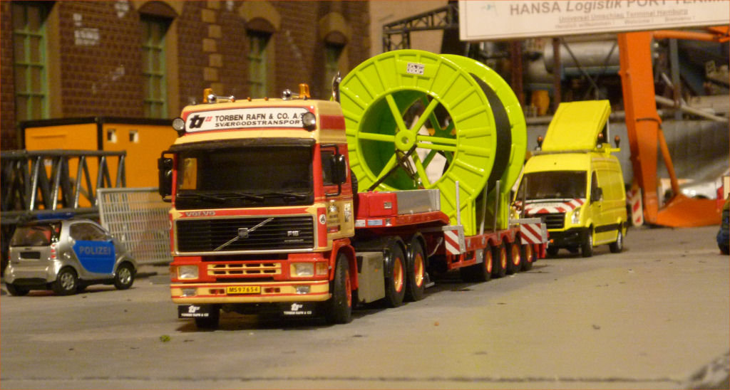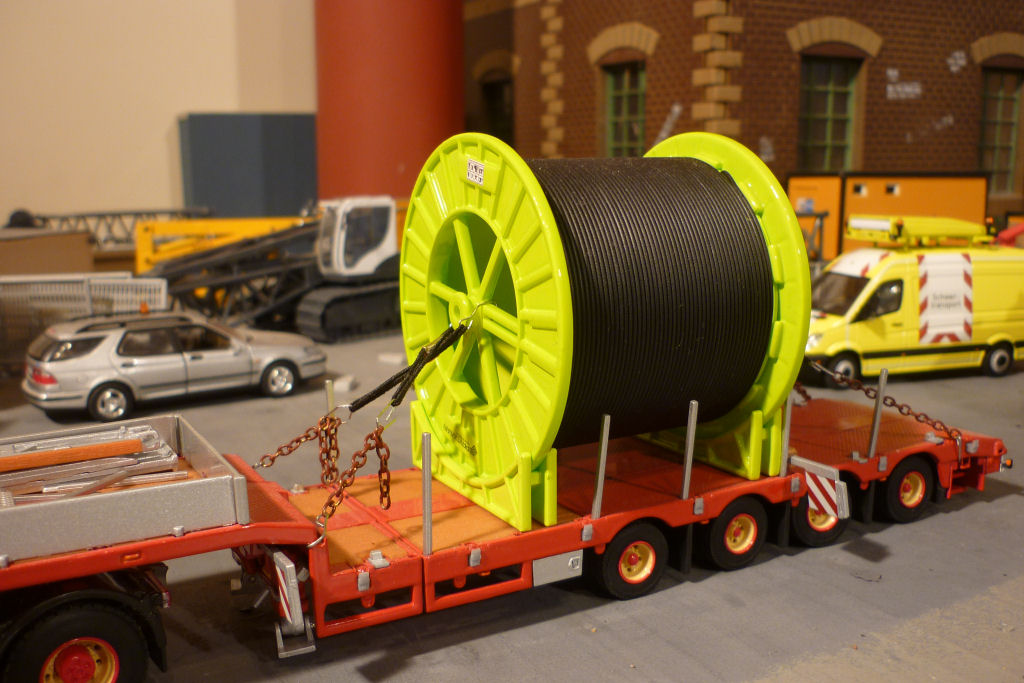 Hier bekam das Modell die kleine Kabeltrommel aus dem Ladegutsortiment von WSI als Ladung, für eine Umfuhr im Hafengebiet.