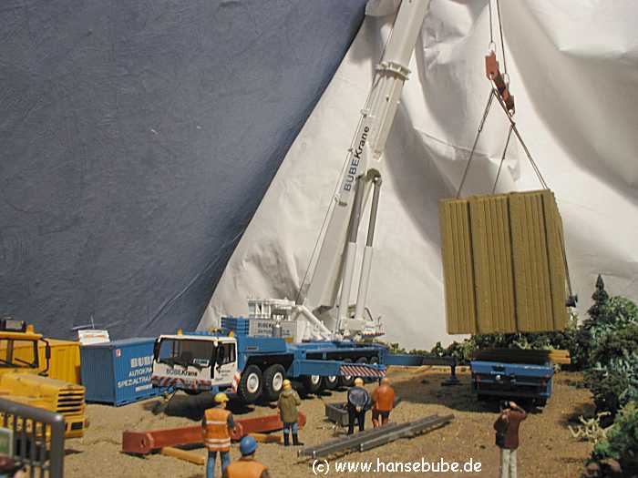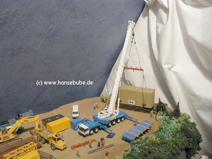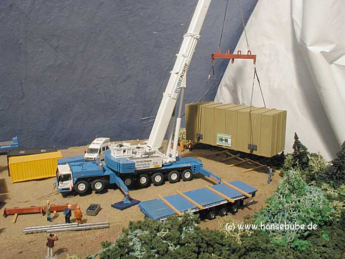 Am Abladeplatz wird die Kiste sofort vom 300er an den Haken genommen