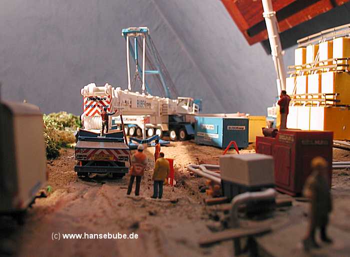 Der Mast wird als nächstes mit der Anlenkung am Oberwagen verbolzt