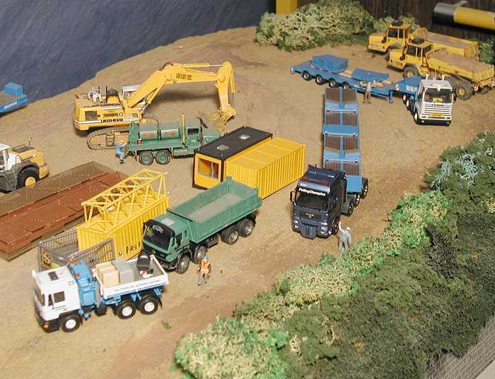 Und der Masttransporter wird rückwärts aus der Baustelle herausgelotst