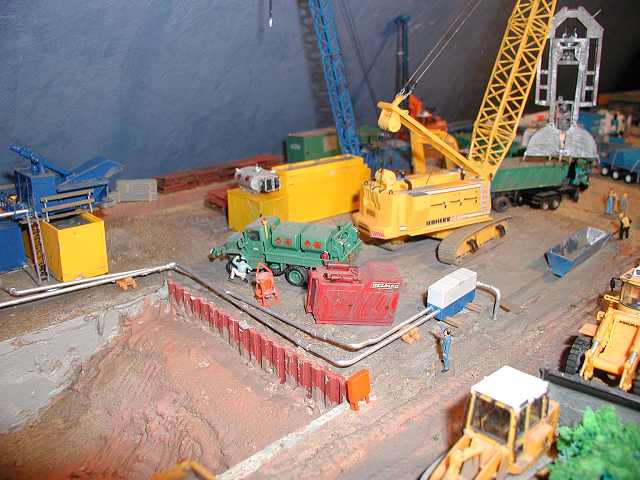 Das Bentonit ersetzt nach und nach den mit dem Schlitzwandgreifer ausgehobenen