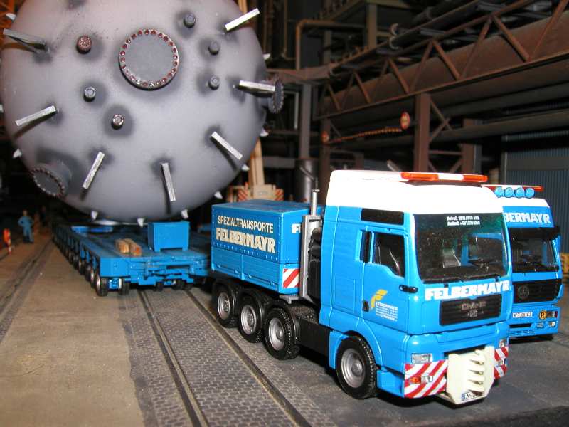 Beim Transport handelt es sich um  2 x 24 Achslinien von Felbermayr gezogen und geschoben