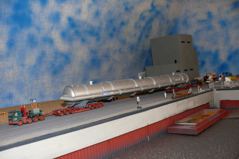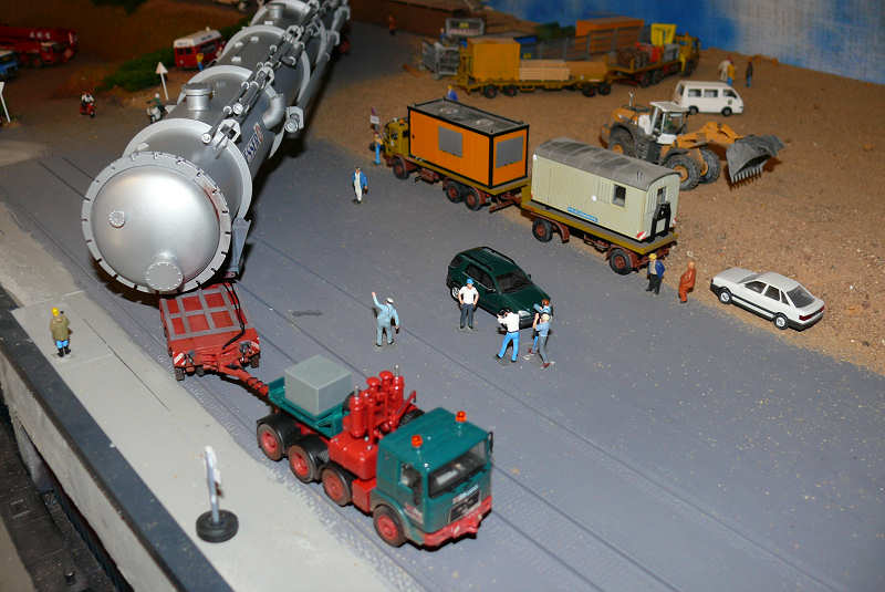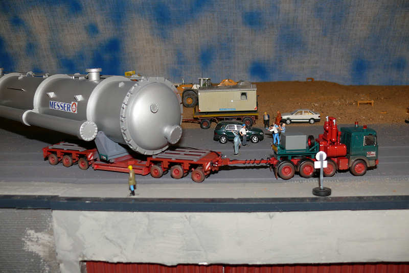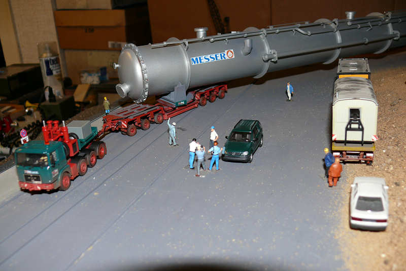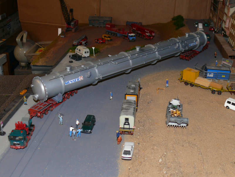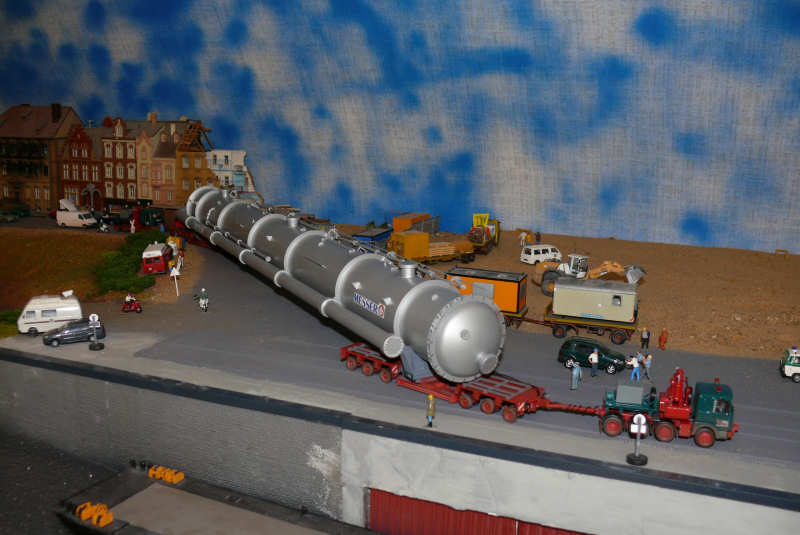 Der Transport stellt ein Modell der 63 m langen und 110 t schweren Trennkolonnenbox dar.