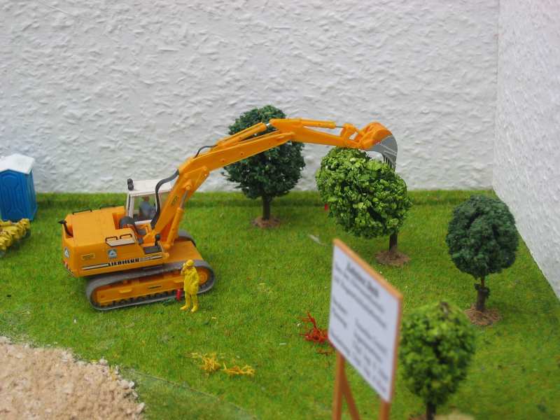 Der Bagger beginnt sofort mit der Freimachung des Geländes.