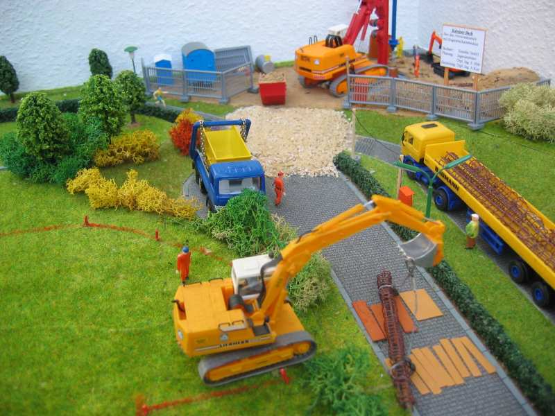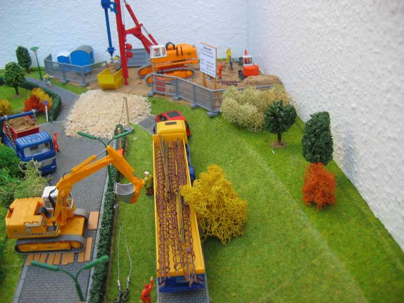 Mit dem Bagger werden die Bewehrungskörbe abgeladen.