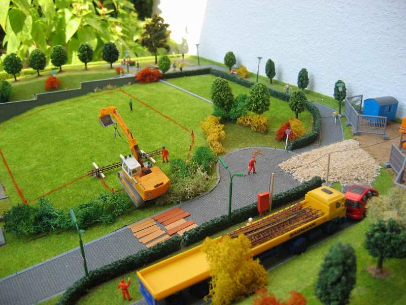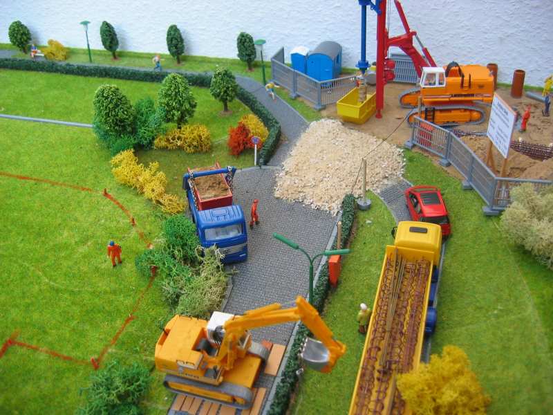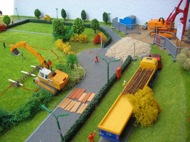 Die Straße wurde vorher mit Bohlen abgedeckt damit das Pflaster nicht vom Bagger beschädigt wird.