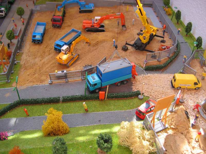 Der Aushub für die Baugrube hat begonnen, rechts wird der erste Aufenthaltscontainer angeliefert