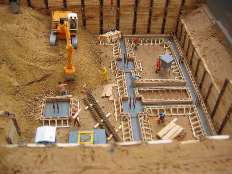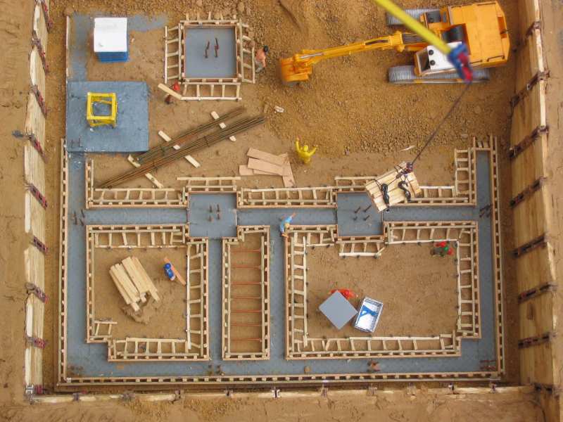 Fertig eingeschalte Fundamente.
