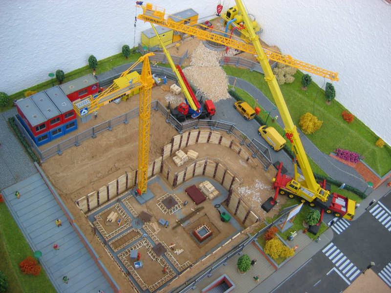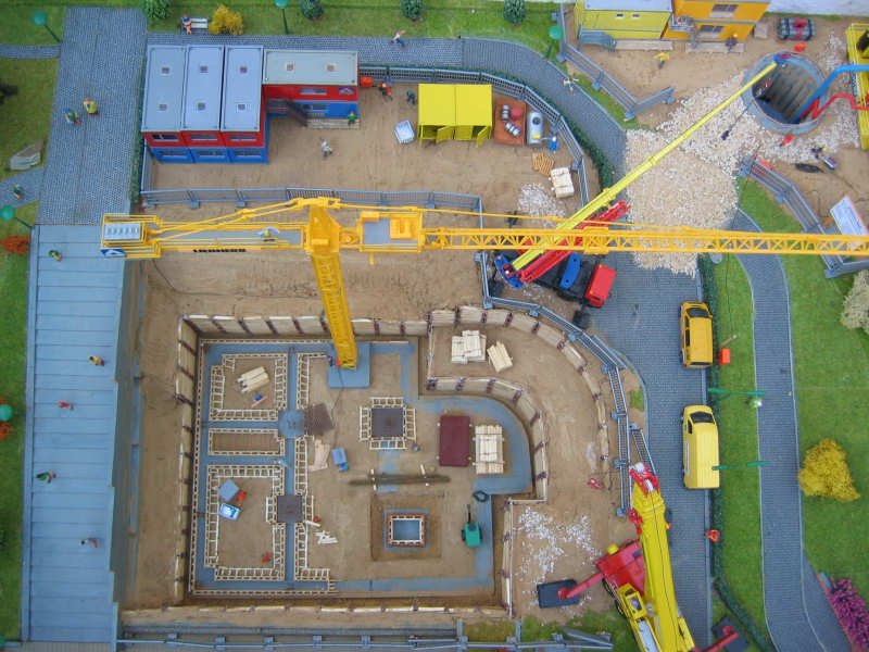 Nach der Montage des Krans werden gleich die ersten Fundamente betoniert.