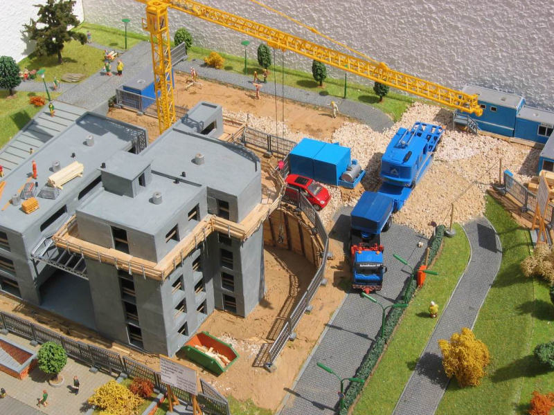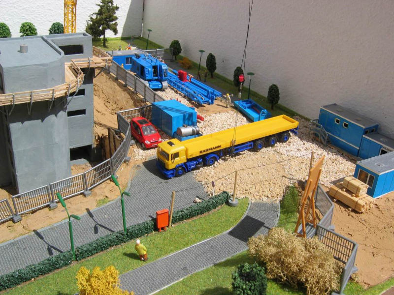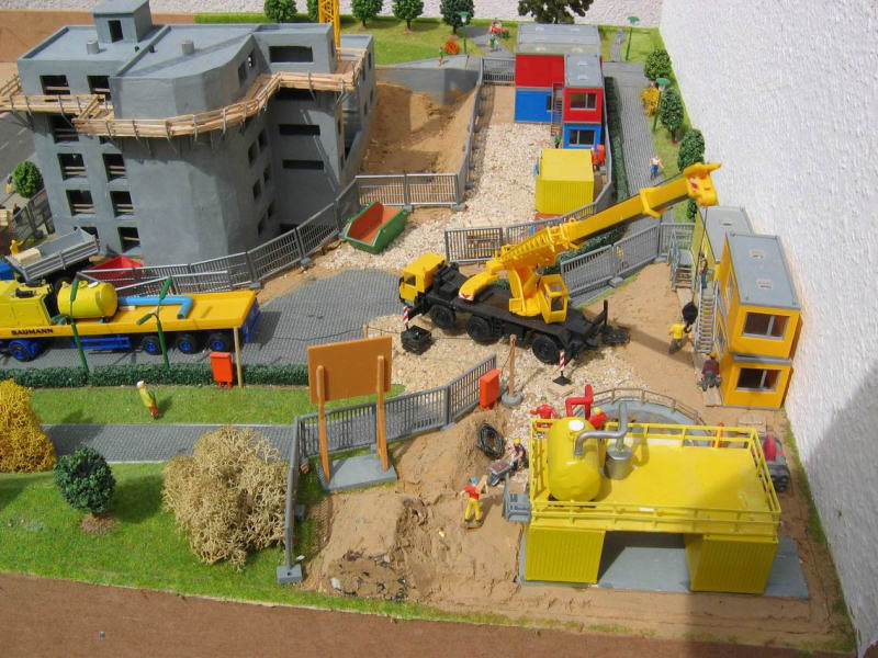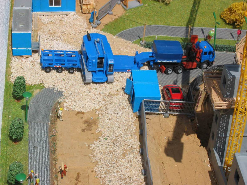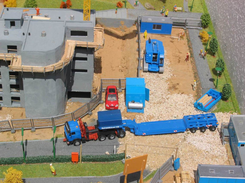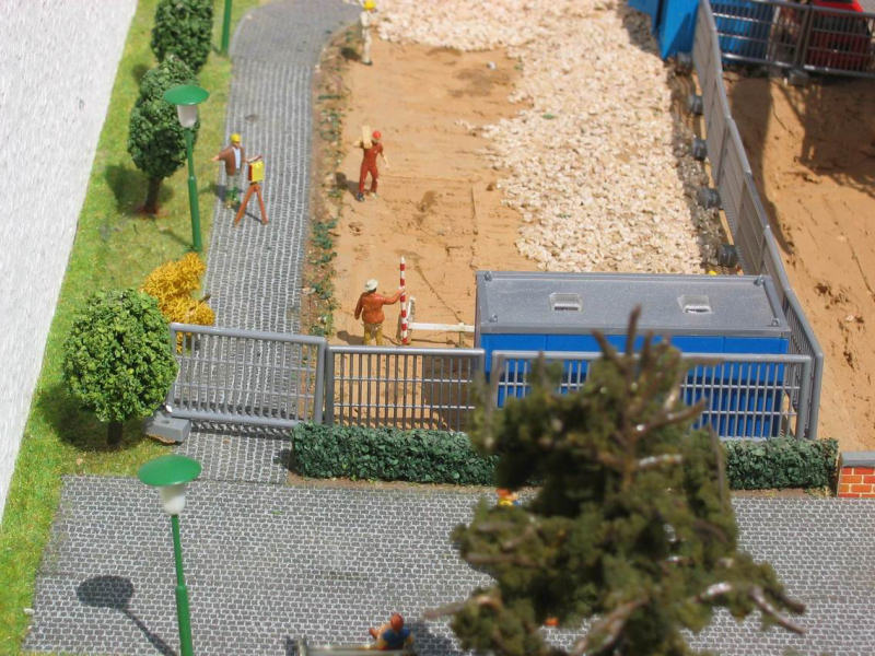 Die Mannschaftsunterkünfte der Hotelbaustelle werden ebenfalls abtransportiert und auf der frei gewordenen Fläche