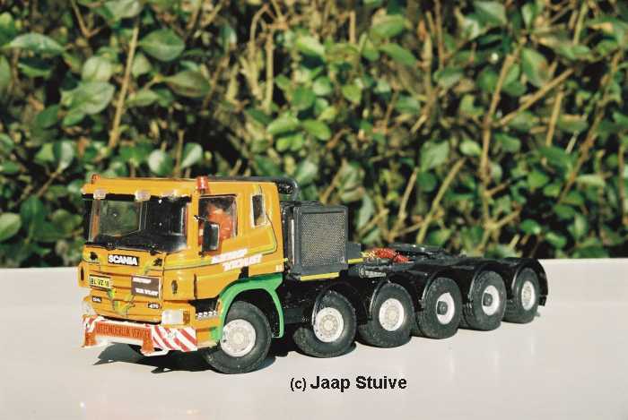 Scania sechsachs Zugmaschine mit Nooteboomtieflader