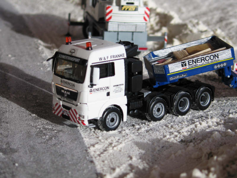 -Von W F Franke eine TGX welche ebenfalls (ausnahmsweise) Kranteile bringt.
