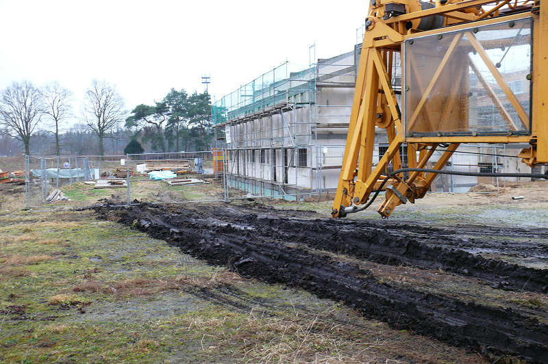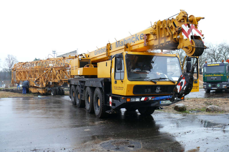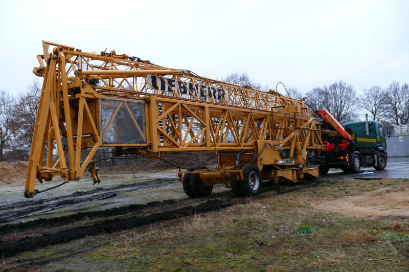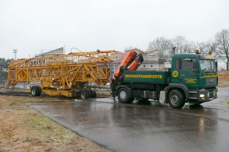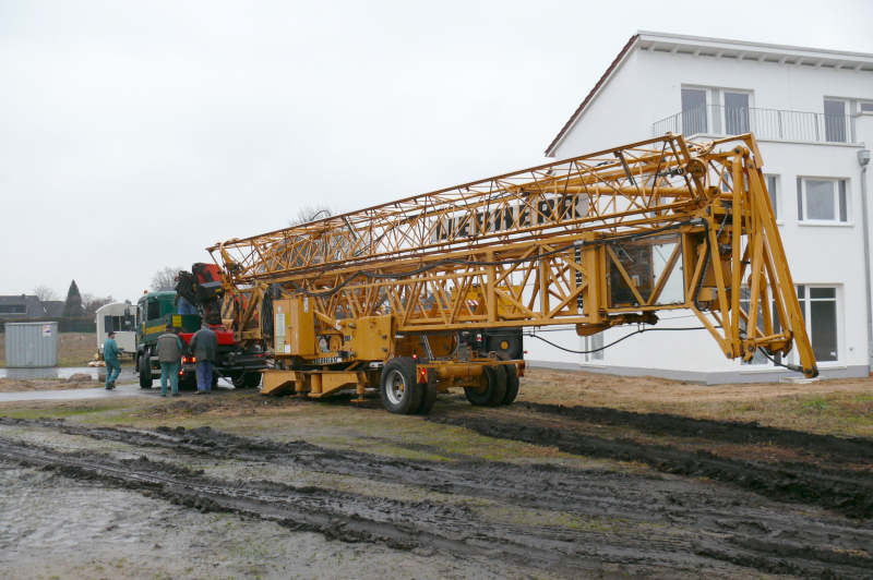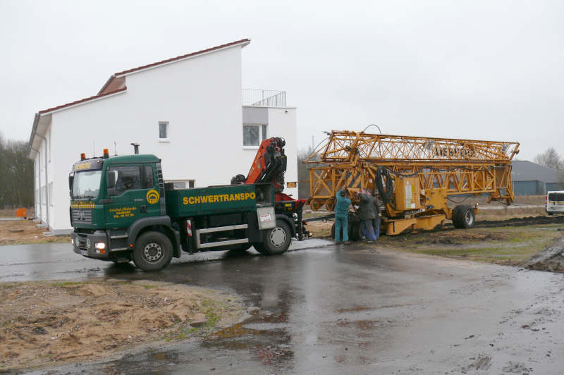 Auch der Baukran wird zum Betriebsplatz der Baumaschinenfirma gebracht.