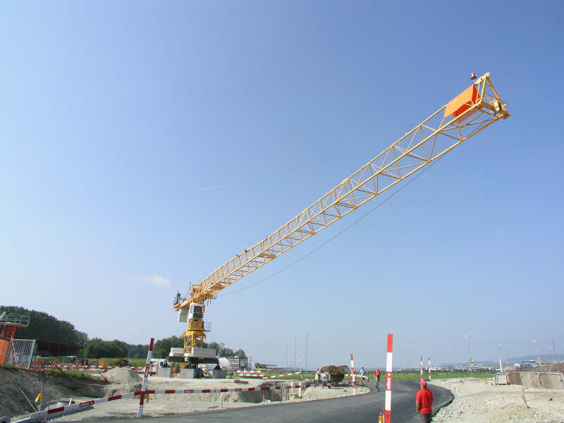 Für eine Baumaßnahme im Bereich der Einflugschneise des Flughafens wurde dieser Baukran besonders