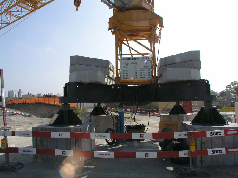 Ein einzelnes Turmteil wurde auf das Fundamentkreuz gesesetzt danach folgte dann gleich der Oberwagen.