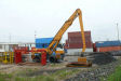 Der Bagger kann mit verschiedenen , von Liebherr angebotenen Auslegervarianten und Umschlag-