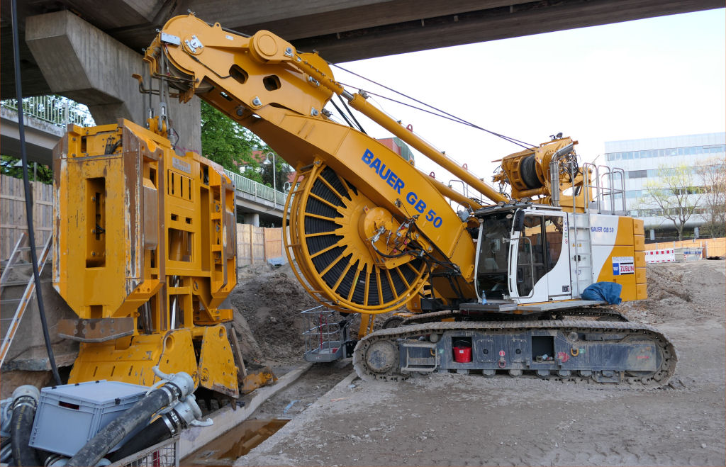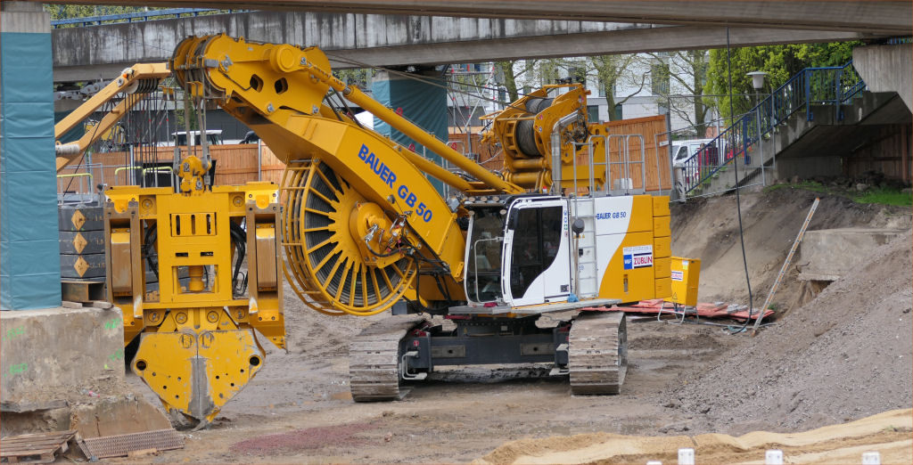 bei Bauer Low Headroom genannt ein um Schlitzwände für die Baugrube und Brücken durchführen zu können.