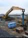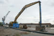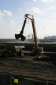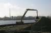 Zweischalengreifer . Es wurde Boden im Uferbereich ausgetauscht.