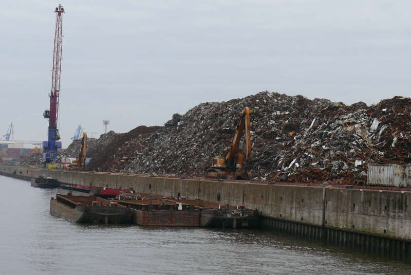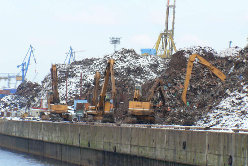 Der Hafenmobilkran gehört zu einem benachbarten Schrott Umschlagterminal einer anderen Firma.