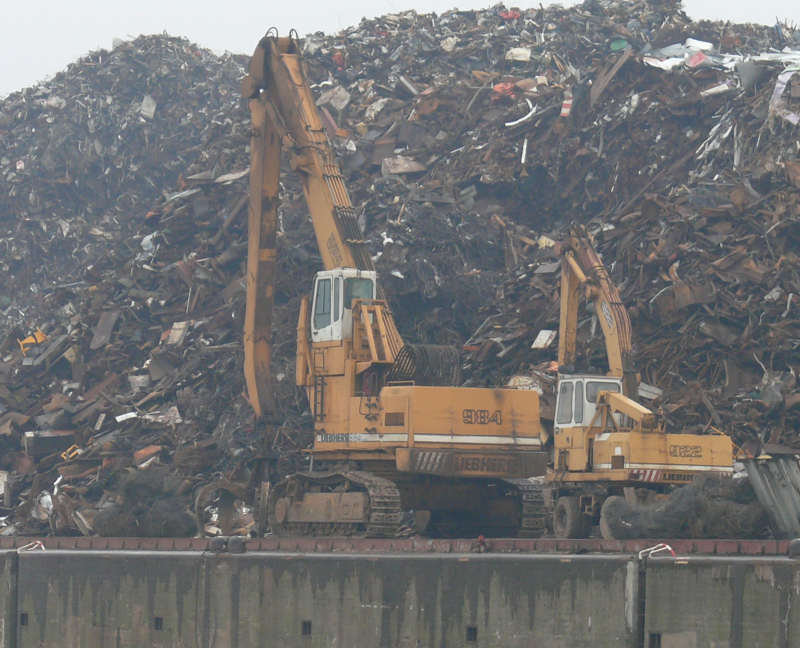 Liebherr Umschlaggeräte auf dem EMR Schrott Exportterminal in Hamburg