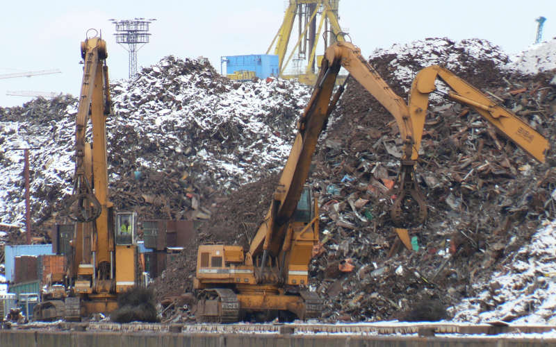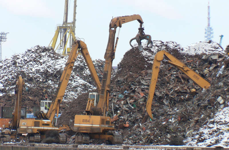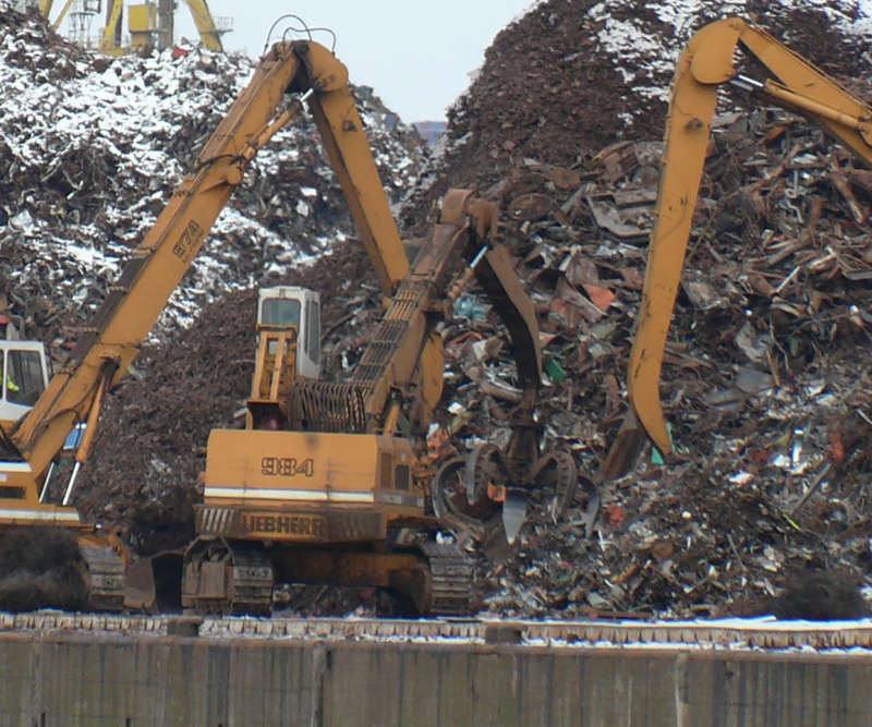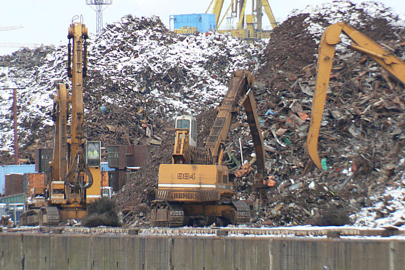 Liebherr Umschlaggeräte auf dem EMR Schrott Exportterminal in Hamburg