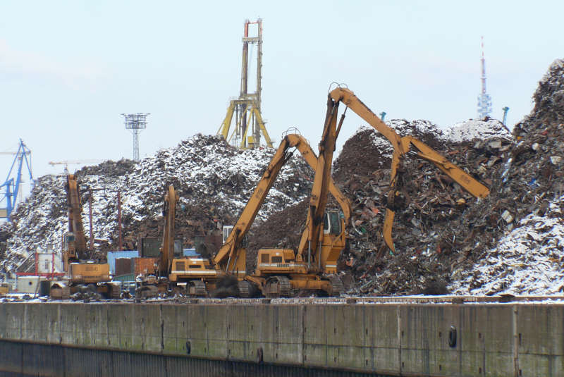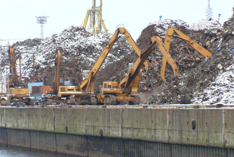 Liebherr Umschlaggeräte auf dem EMR Schrott Exportterminal in Hamburg