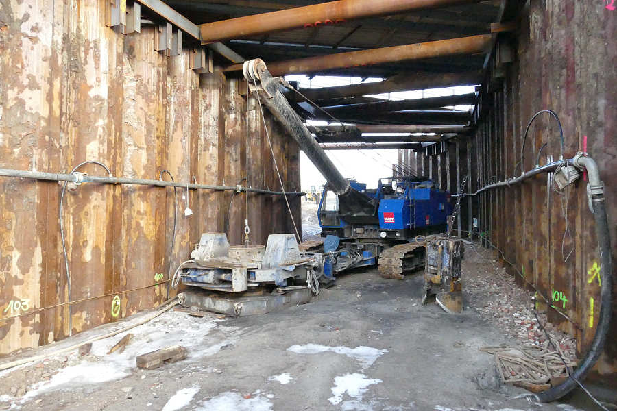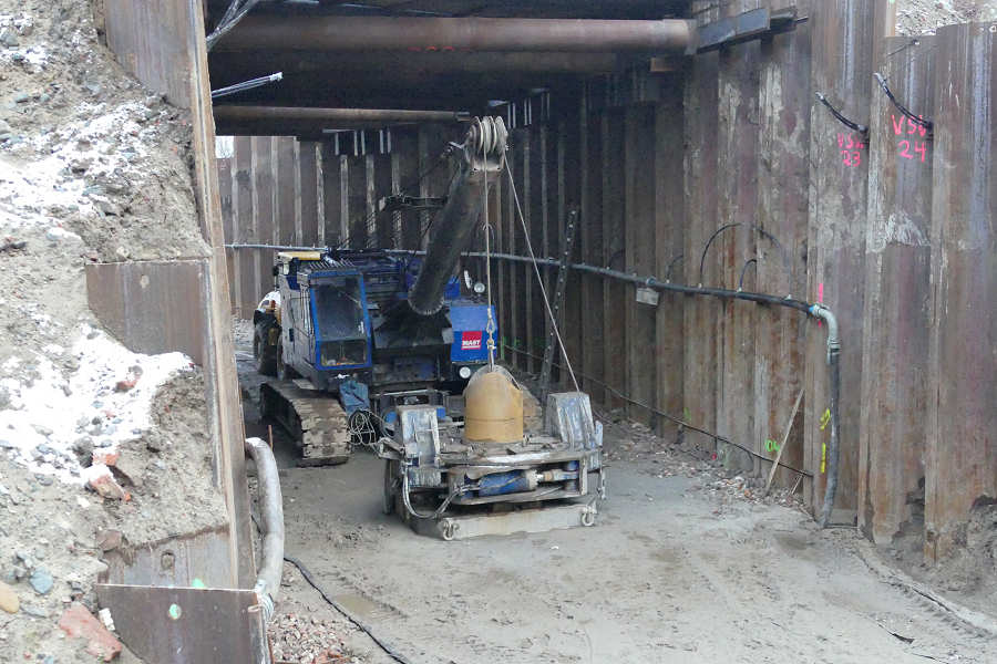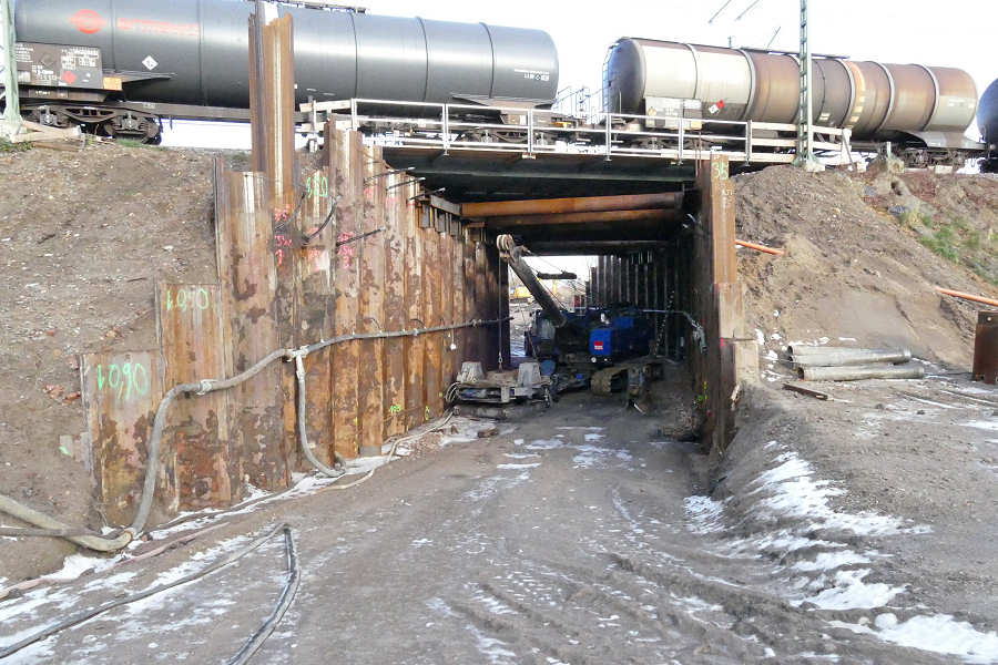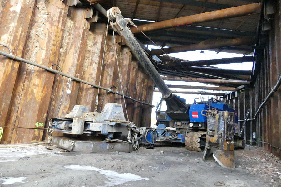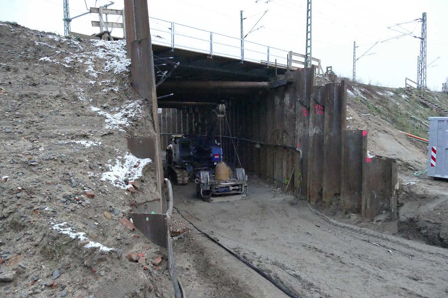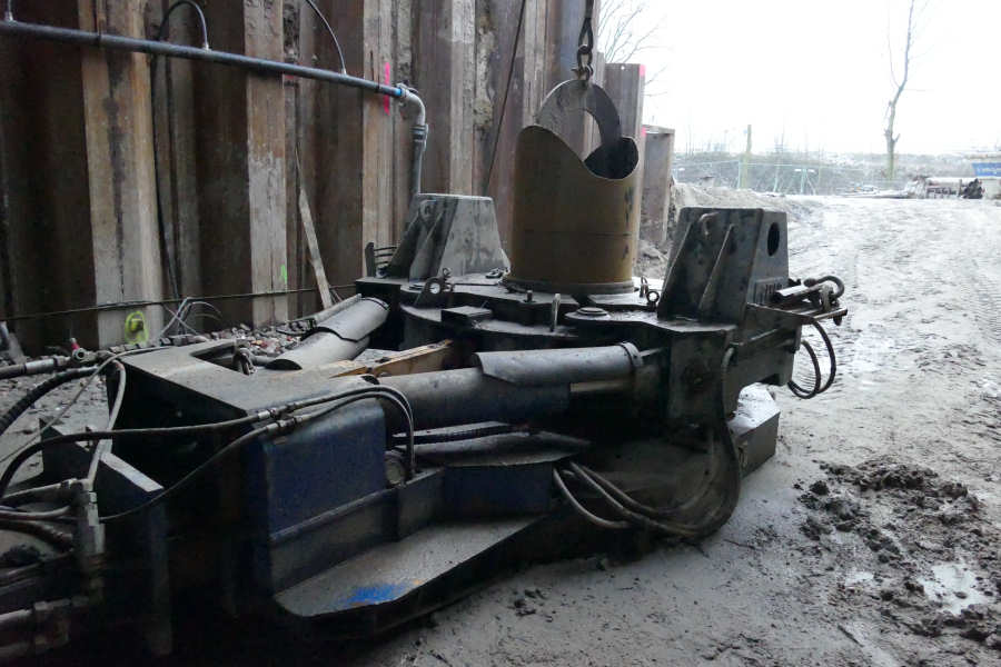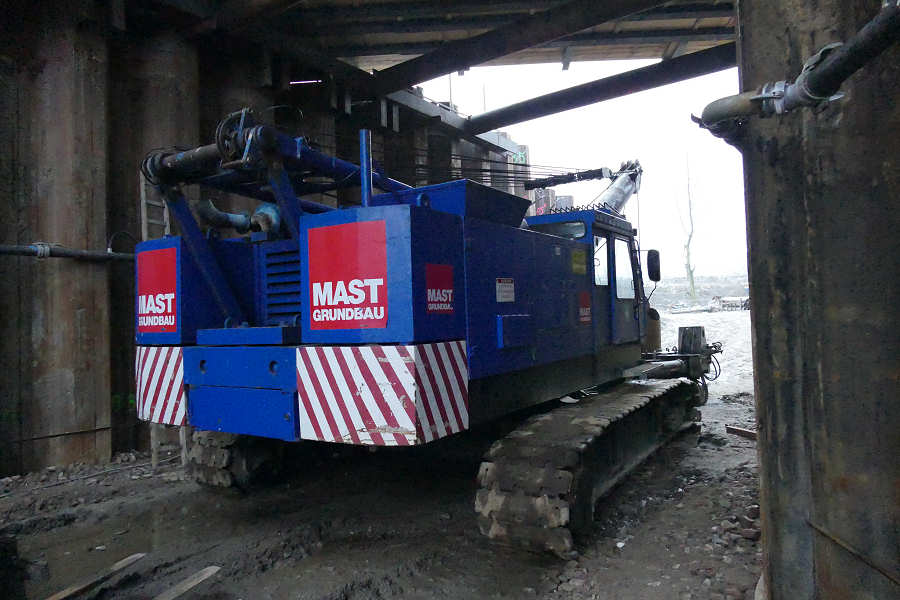 Mit kurzem Rohrausleger und  Leffer Verrohrungsmaschine