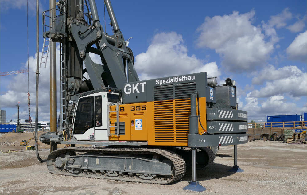 Großdrehbohrgerät in der Hafencity Hamburg im Einsatz