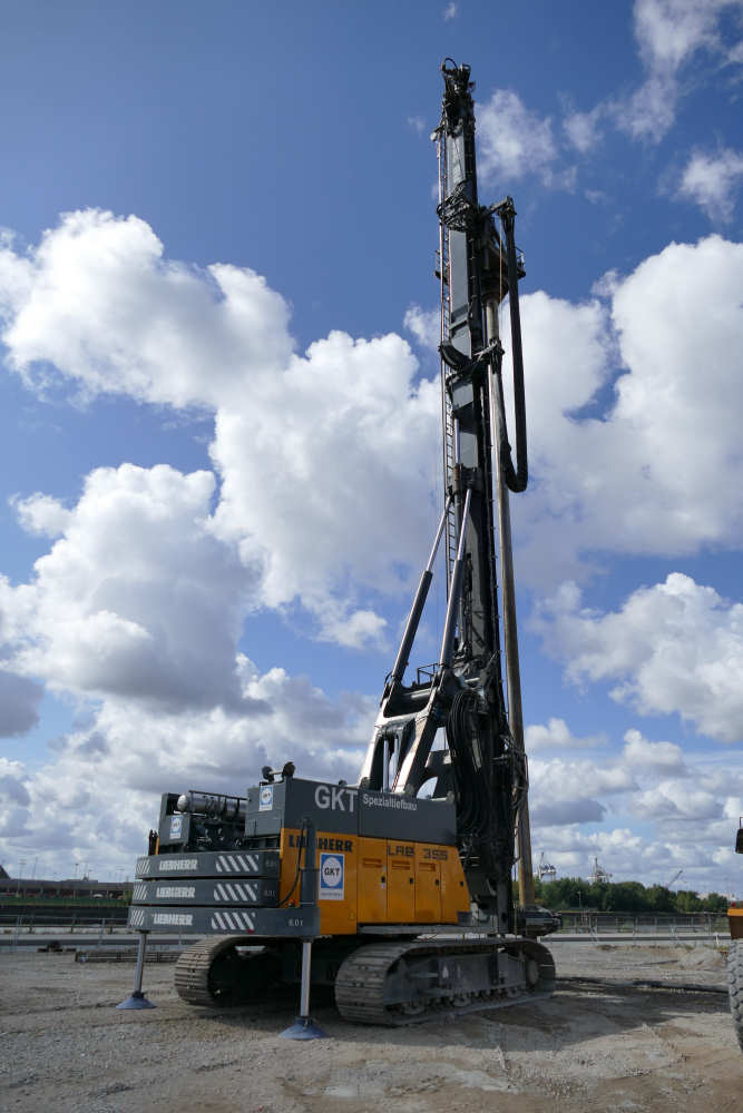 Großdrehbohrgerät in der Hafencity Hamburg im Einsatz