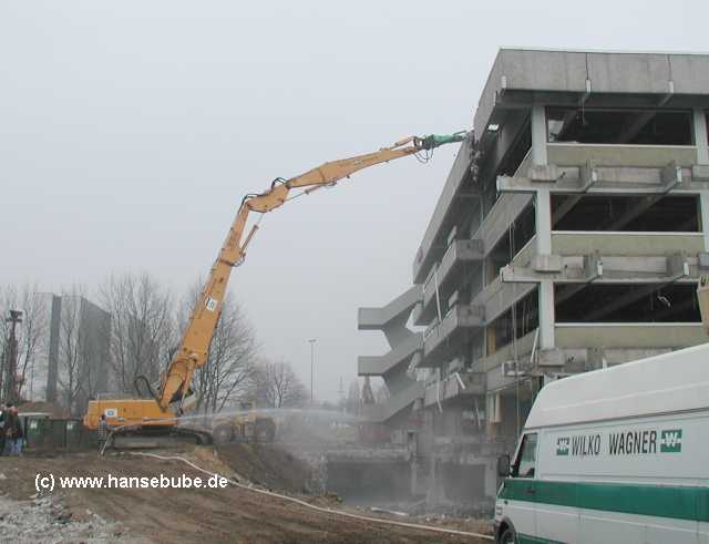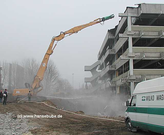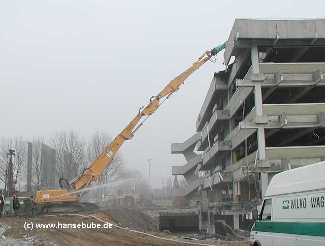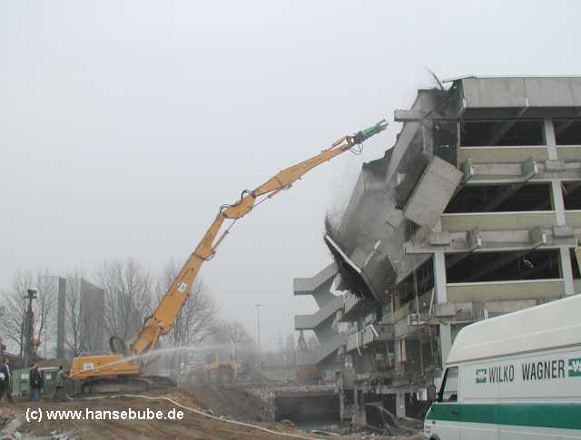Die eigentlich Abbrucharbeiten am Gebäude haben begonnen,auf der rechten Seite fehlen bereits