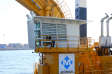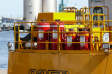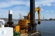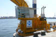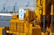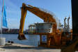 Der Liebherr P 9250 Pontonbagger von Möbius Bau ist auf dem MP 27 Ponton aufgebaut,
