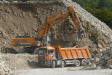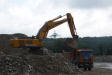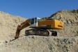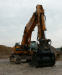 Teil 1 zeigt den Bagger bei Verladearbeiten an einer Abraumdeponie für die Baustelle