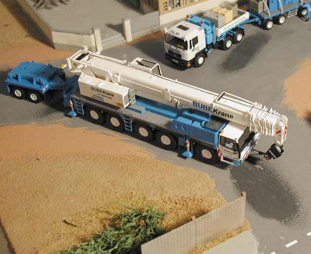 ausserdem bekam der Kran einen zweiachsigen Goldhofer Ballasttrailer und