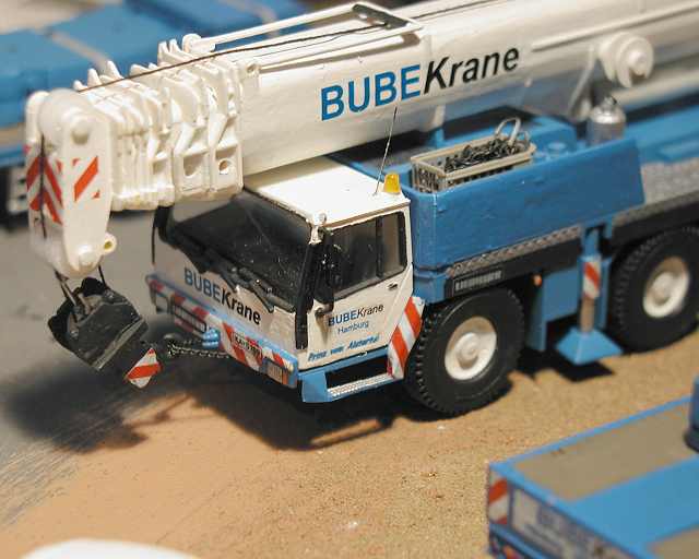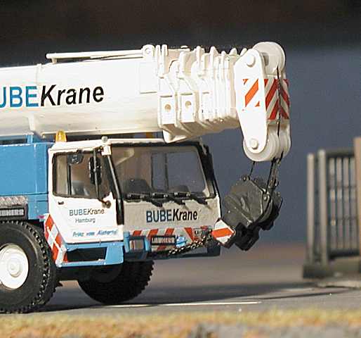 die Oberwagenkabine wurde kippbar gestaltet und eine Liebherrhakenflasche nachgebaut ,