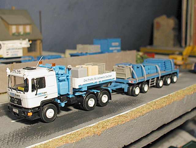 Und hier Ansichten des zweiachsigen Goldhofer Ballasttrailers,welcher komplett im Eigenbau entstand .
