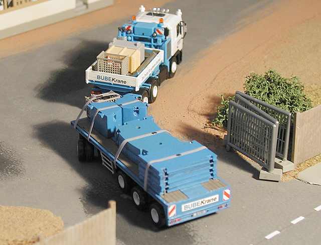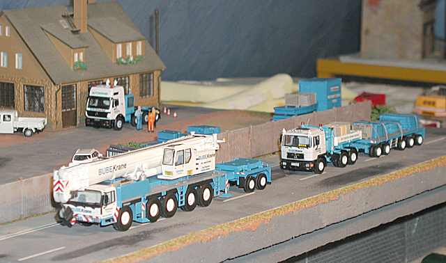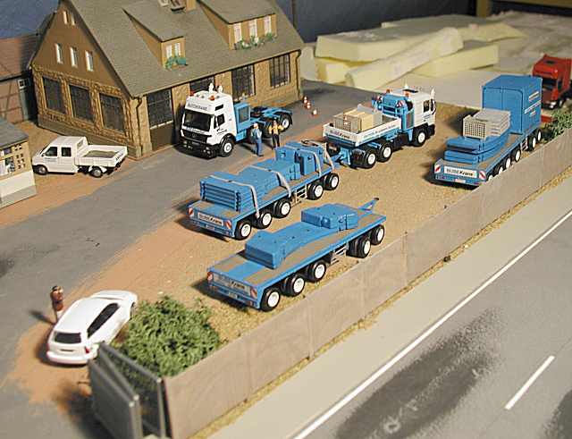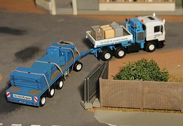 es stehen noch ein weiterer Fünfachser und ein Sechsachser ,beladen mit Zubehör