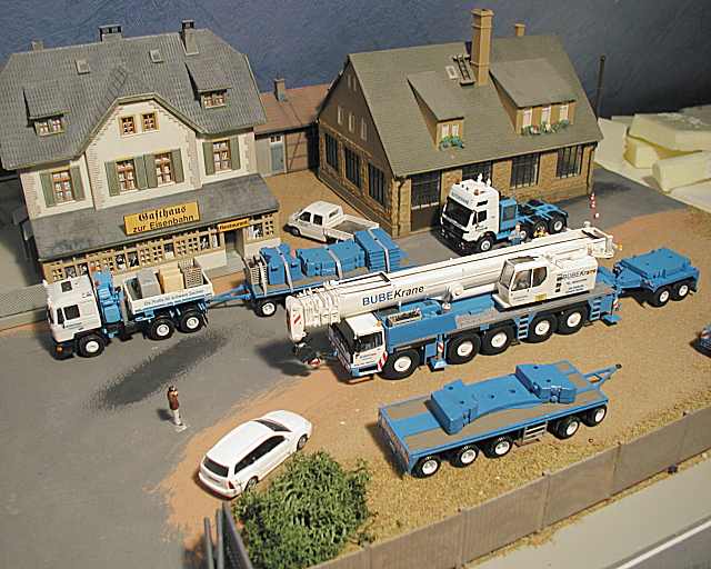 eines LTM 1400 hier herum . Im Hintergrund die Zugmaschine des LTM 1800 Masttransporters .
