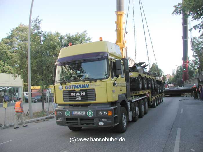 Transporteur war die Spedition Gutmann mit einem vierachsigen MAN mit fünfachs Semitieflader