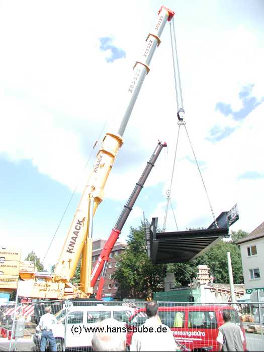 Langsam wird die Brücke in der Luft um 90 Grad gedreht