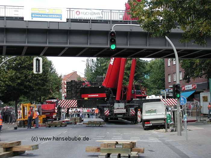 Damit ist der Einhub der Brücke vollzogen , die Krane wurden danach sofort abgerüstet