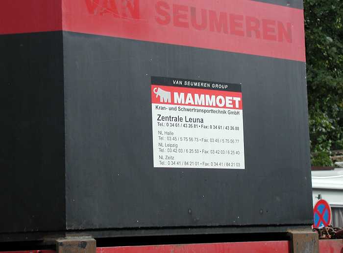 Firmenschild mit den deutschen Niederlassungen der Mammoet van Seumeren Group
