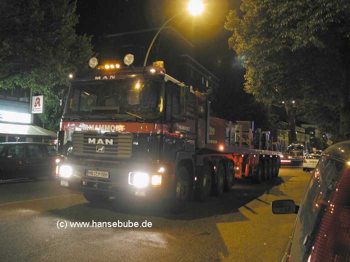 Ein MAN F 90 mit E 2000 Kabine, der Auflieger ist ein fünfachsiger Ballastauflieger der Firma Tang