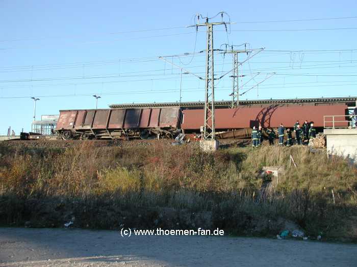 Am Nachmittag war das THW damit beschäftigt auf der anderen Seite des Bahnsteigs,Sandsäcke aus