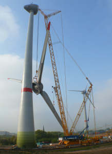 von Sarens auf der Baustelle aufgerüstet um Maschinenhäuser und Flügel zu montieren.