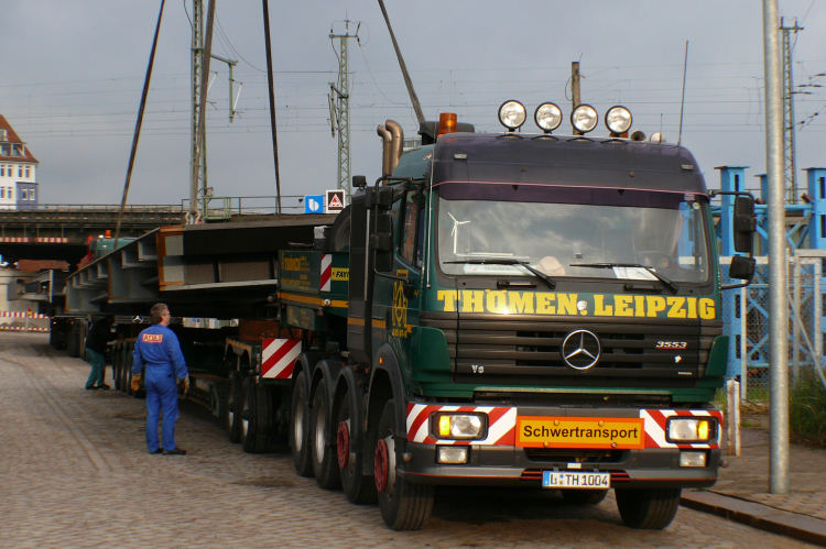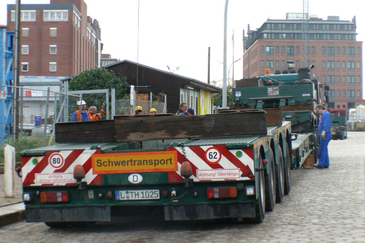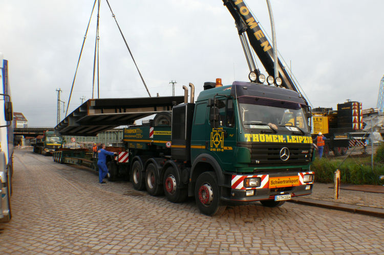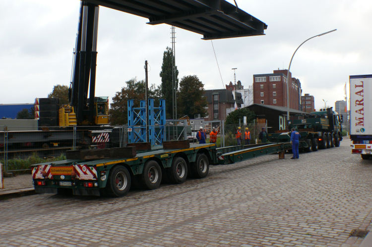 Anlieferung der ersten Brückenteile