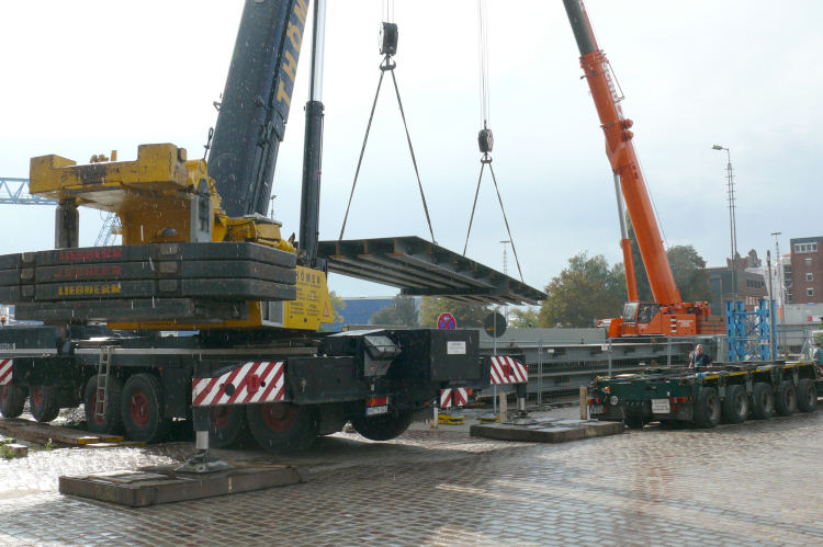 Anlieferung der ersten Brückenteile