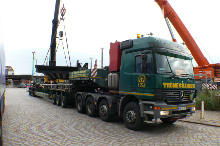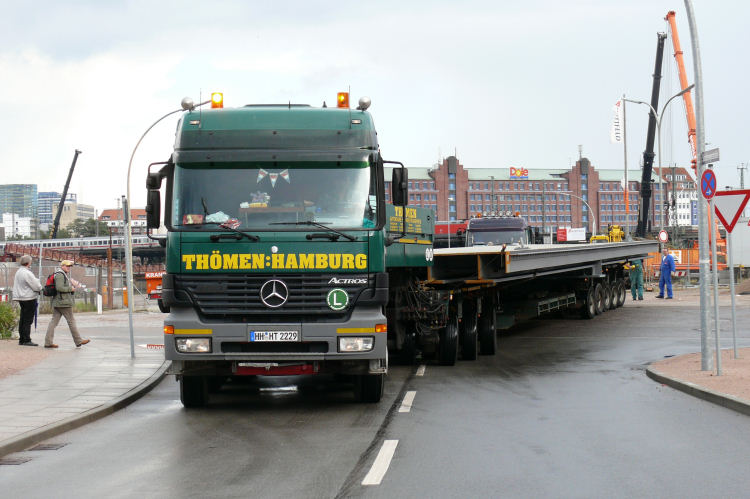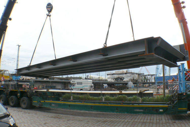 Anlieferung der ersten Brückenteile