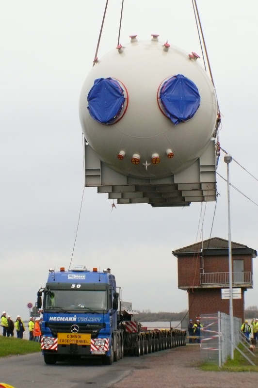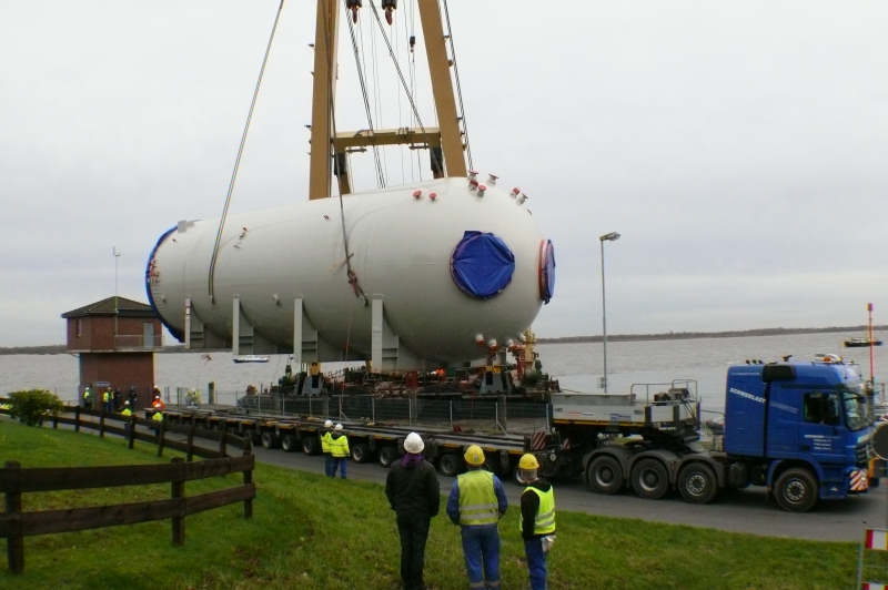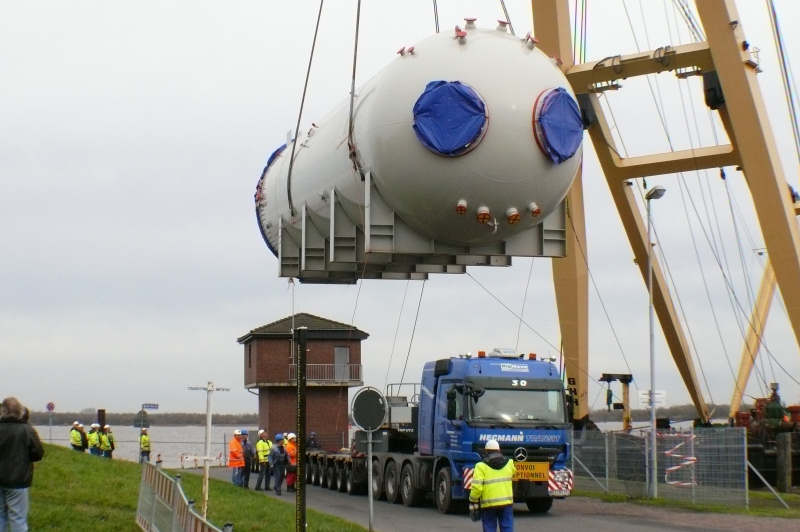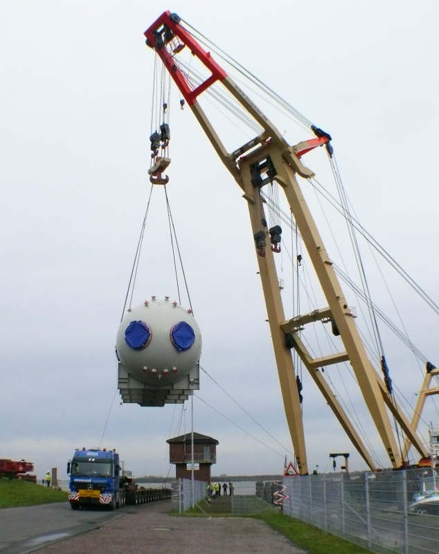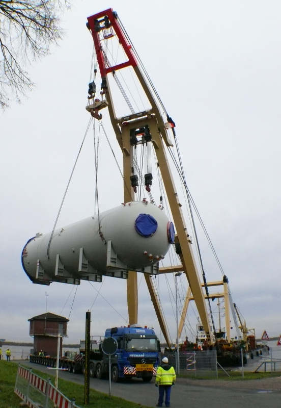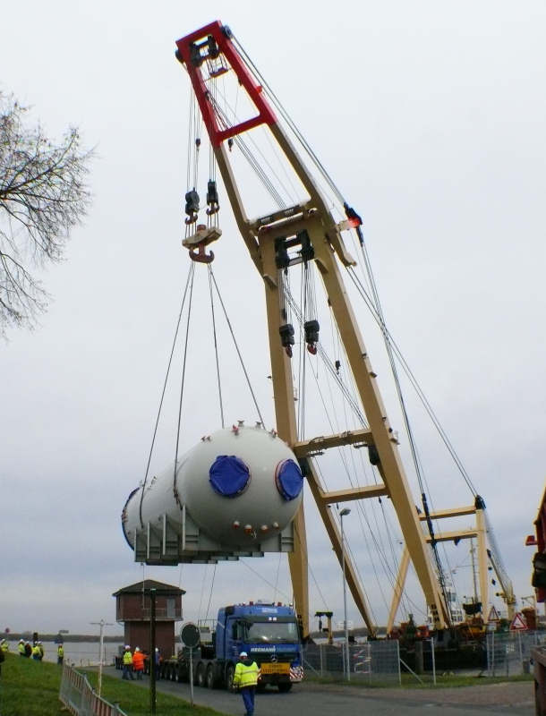 Hegmann Transit, Autoklaven Verladung durch Schwimmkran Enak