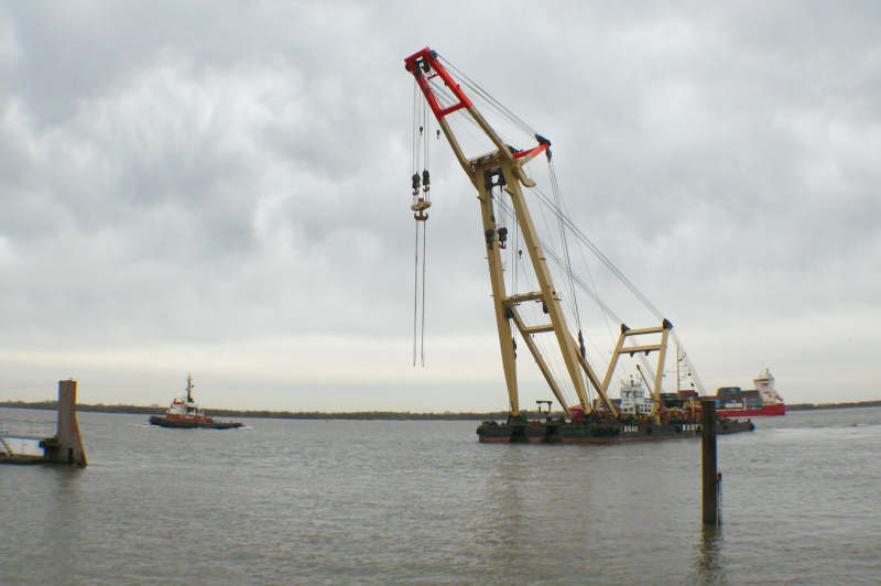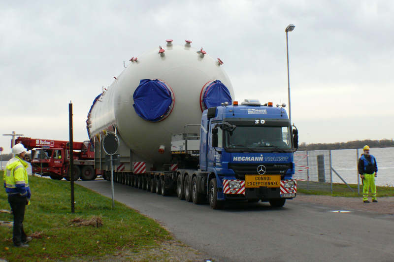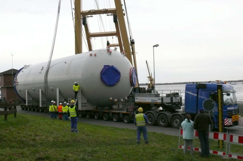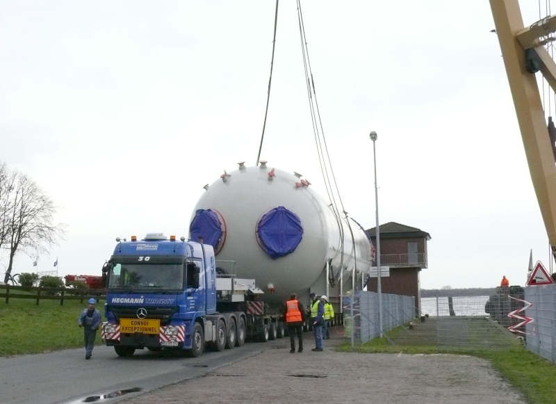 Hegmann Transit, Autoklaven Verladung durch Schwimmkran Enak